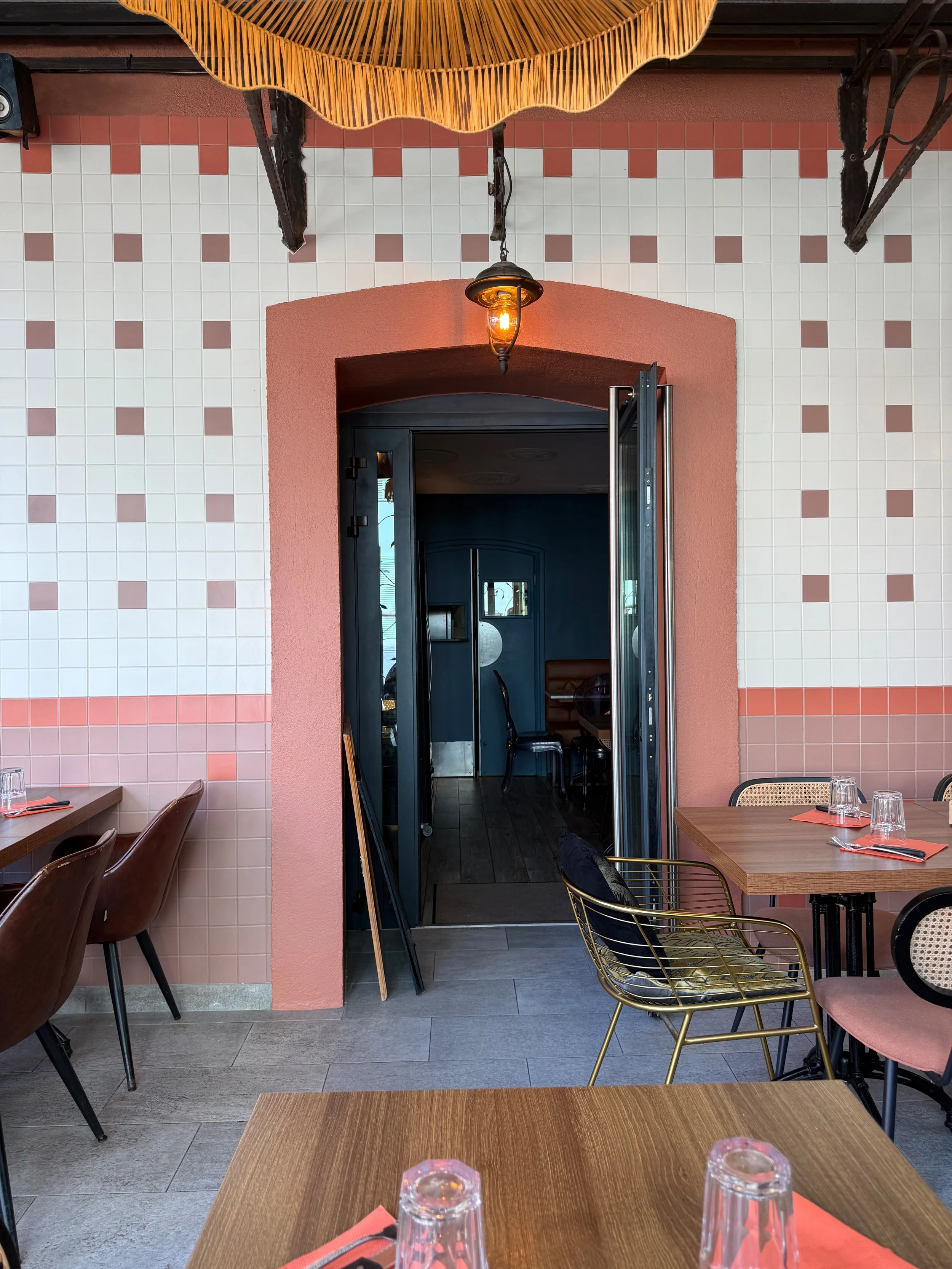 Ce projet mêle esprit méditerranéen et modernité chaleureuse : murs texturés, assises en cannage, palette terre cuite et luminaires artisanaux s’associent pour créer une atmosphère conviviale et solaire. Le motif damier en céramique, graphique, rythme l’espace et lui apporte une identité forte. Une parenthèse design pensée pour savourer l’instant.